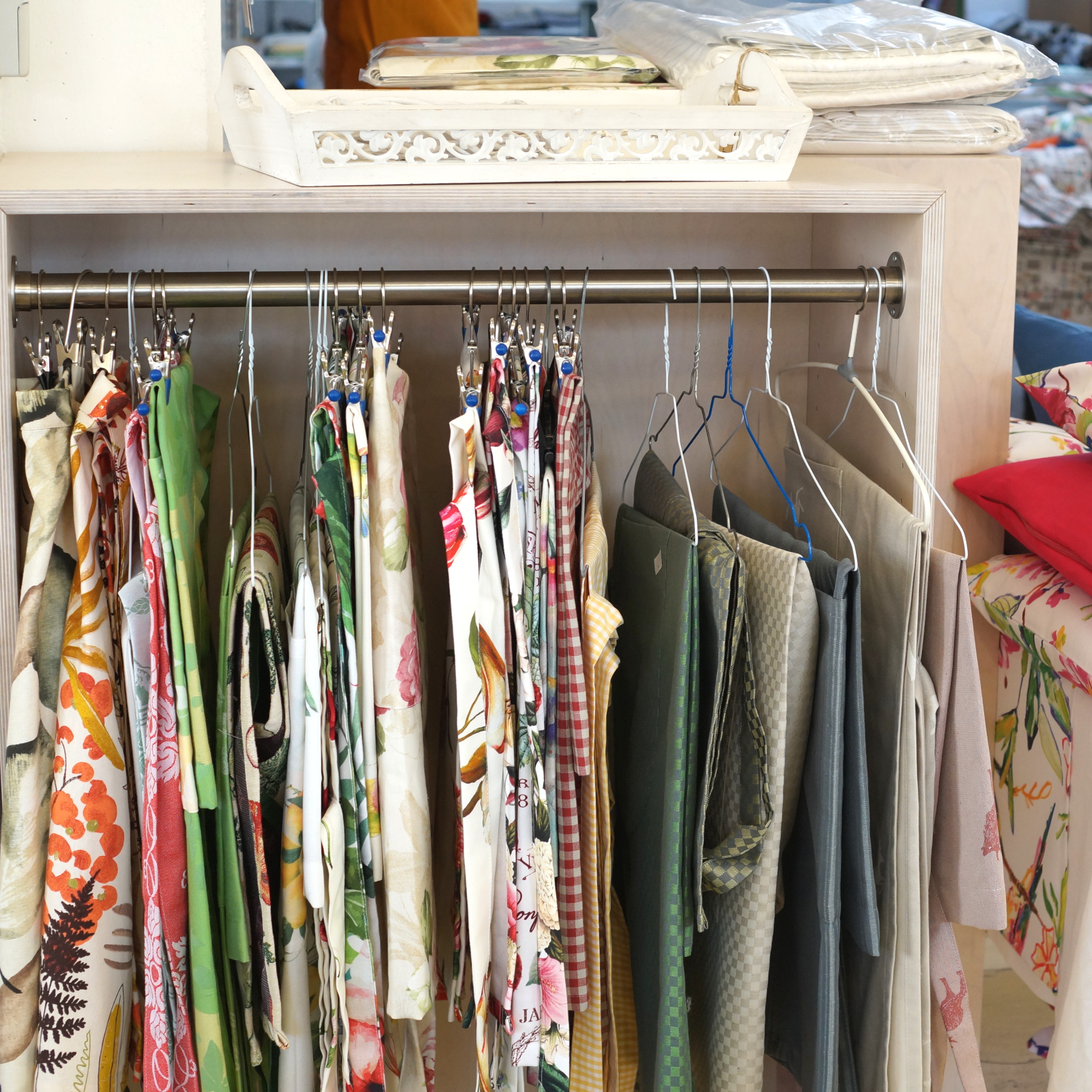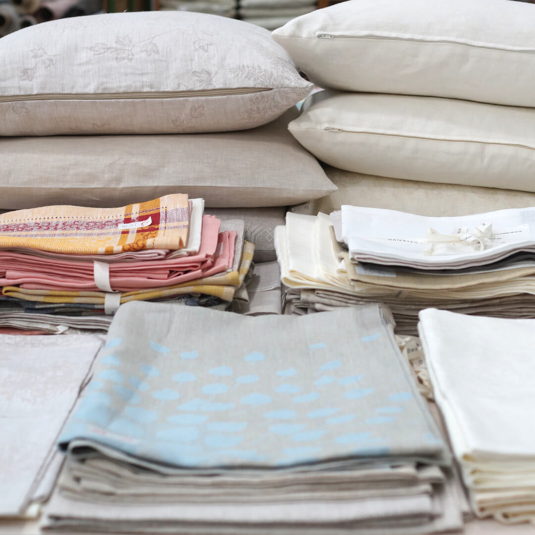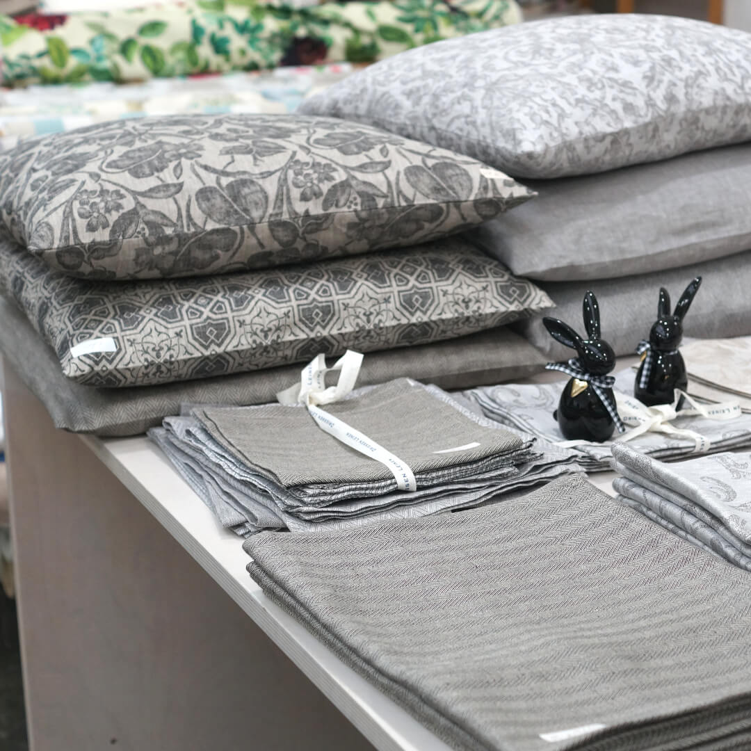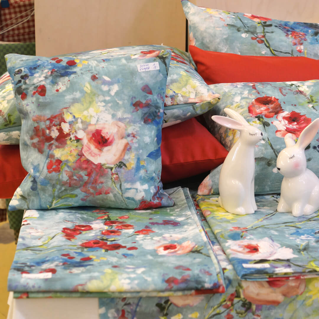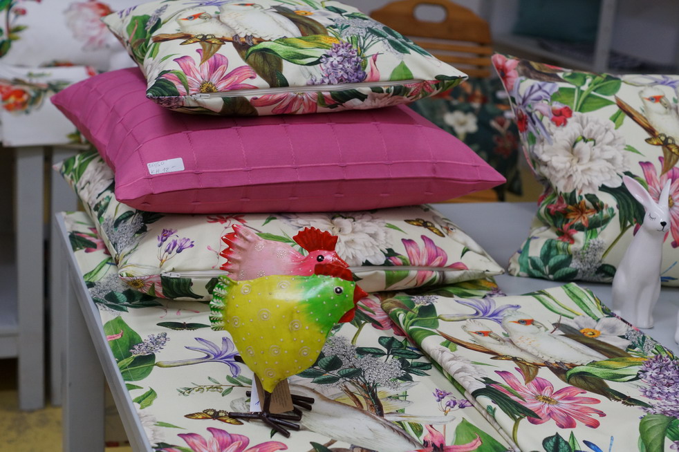 Alles muss raus: Stoffe, Kissen, Geschirrtücher, Tische, Stühle, Regale, alles mit satten Rabatten.