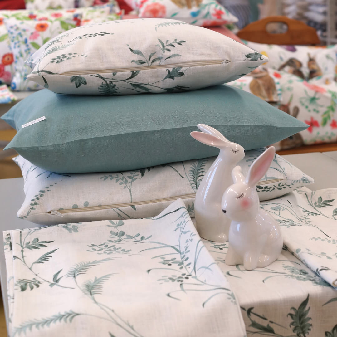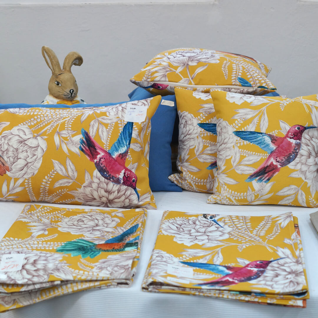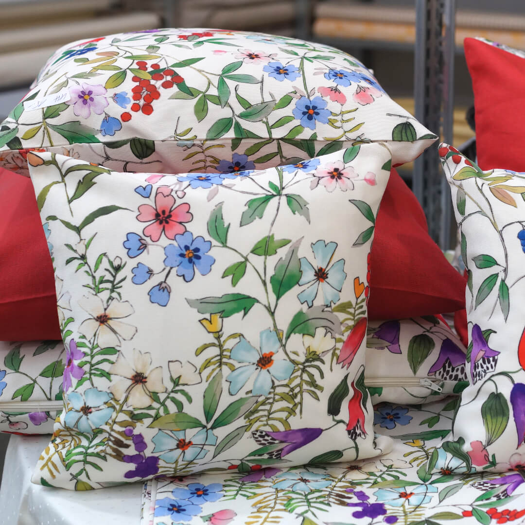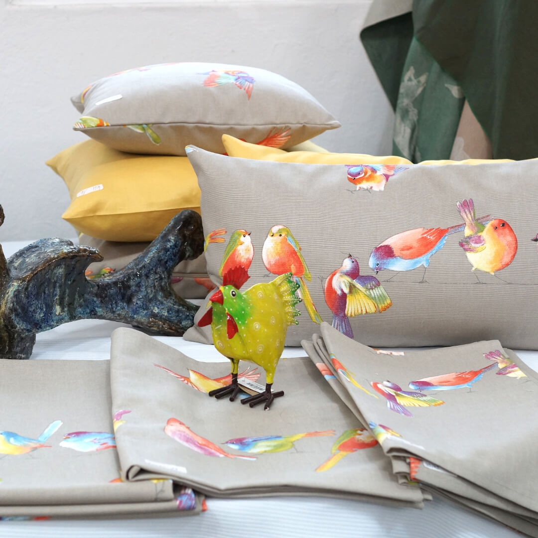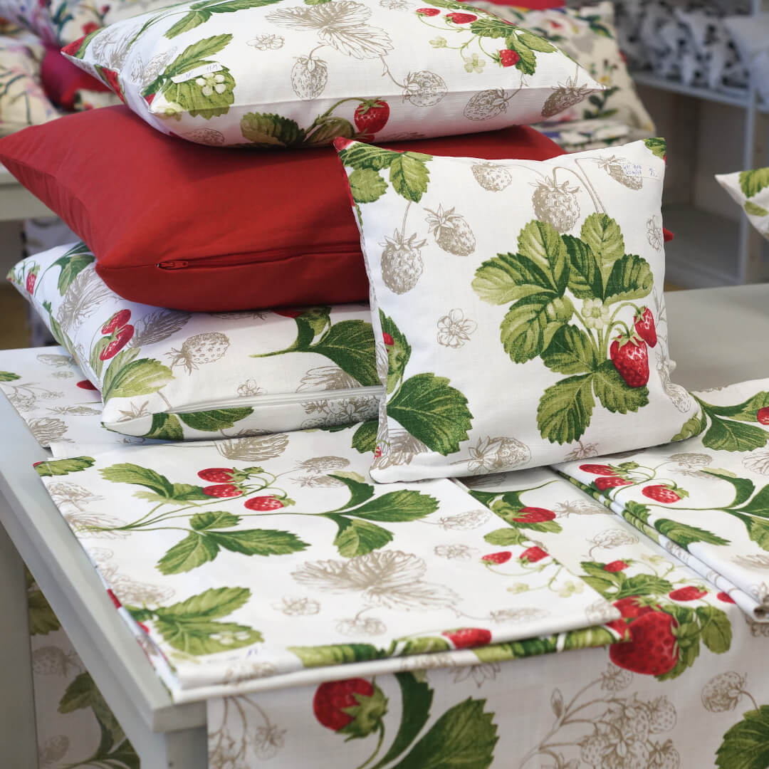 Alles muss raus: Stoffe, Kissen, Geschirrtücher, Tische, Stühle, Regale, alles mit satten Rabatten.